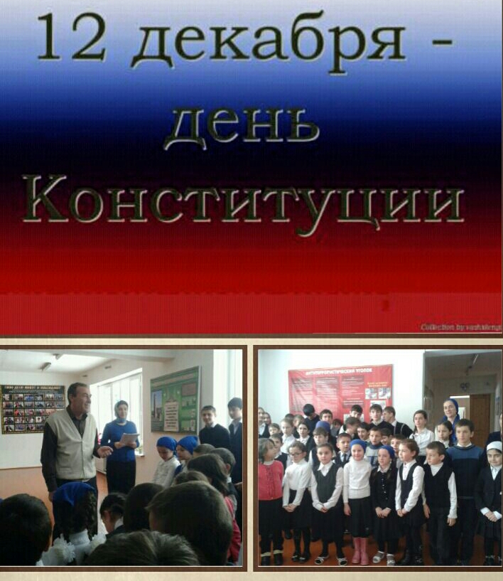 12.12.2015Сегодня 12.12.2015 г в МБОУ " СОШ с.Хал-Келой " провели общешкольную линейку посвященную ко Дню Конституции РФ . На общешкольном мероприятии директор школы Кучаев О.А , провел беседу-тренинг на тему «Конституция России». Также в 5-11 классах были проведены классные часы: «12 декабря – День Конституции России» .
